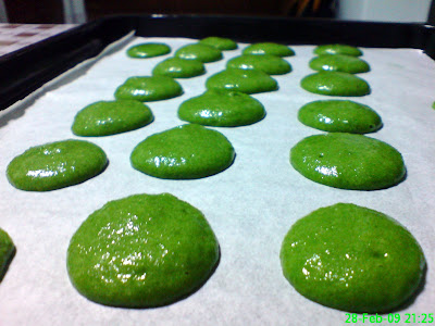 Matcha powder was really expensive, $2 for 20grams and we already used 4.5grams for 23 pcs of macaron shells >=(